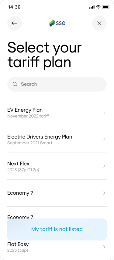 TARIFF_MISSING | Returns next page depending on Connect flow logic |