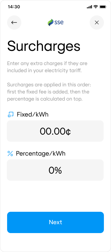 Customer enters their tariff surcharges.